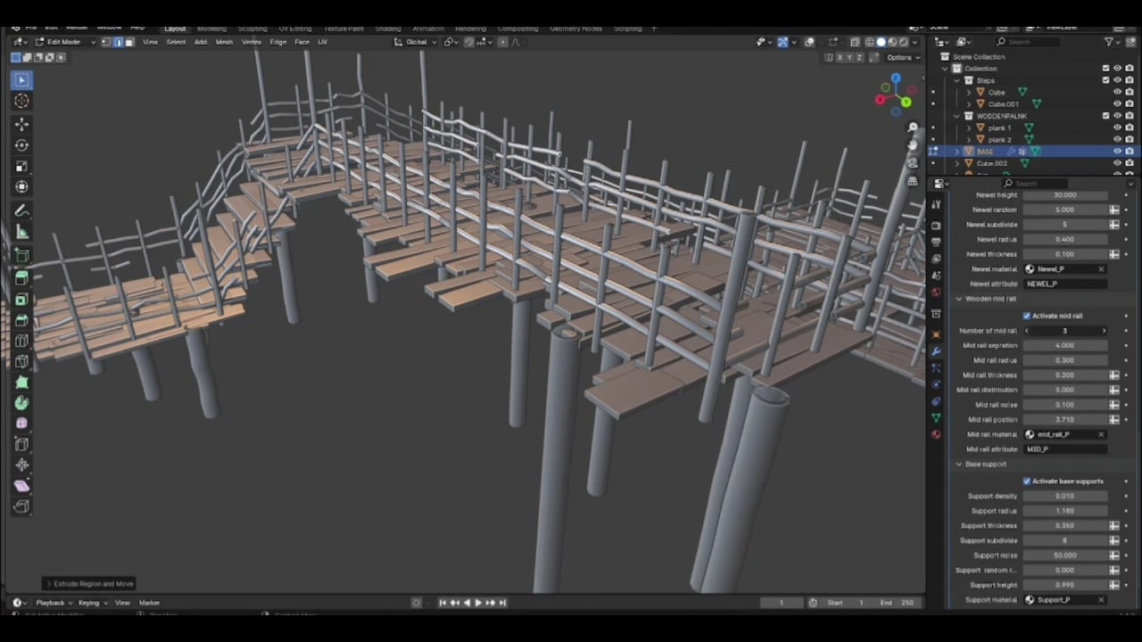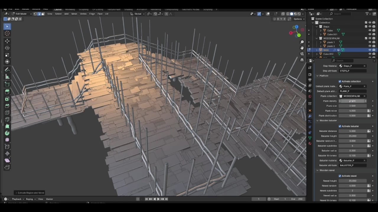 Create detailed wooden platforms, planks, and structures instantly with this fully procedural Geometry Nodes asset.